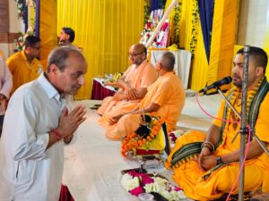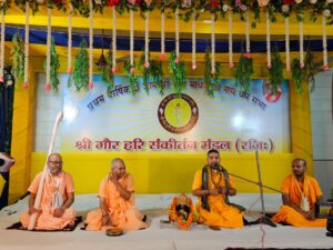 उनकी दिव्य लीलाओं से जुड़ना चाहिए देहरादून से पधारे पूज्यपाद रंडी स्वामी भक्ति सुंदर भारती महाराज जी ने अपने प्रवचन देते हुए कहा कि इस संसार में दुखों से छुटकारा पाने के लिए इस कलयुग में भगवान का नाम है सर्वश्रेष्ठ वस्तु है इसलिए कलयुग के हर जीव को हरिनाम करना अत्यंत आवश्यक है हम सब की पहचान आत्मा है और आत्मा से भगवान की सेवा करना सर्वश्रेष्ठ है संकीर्तन भजन